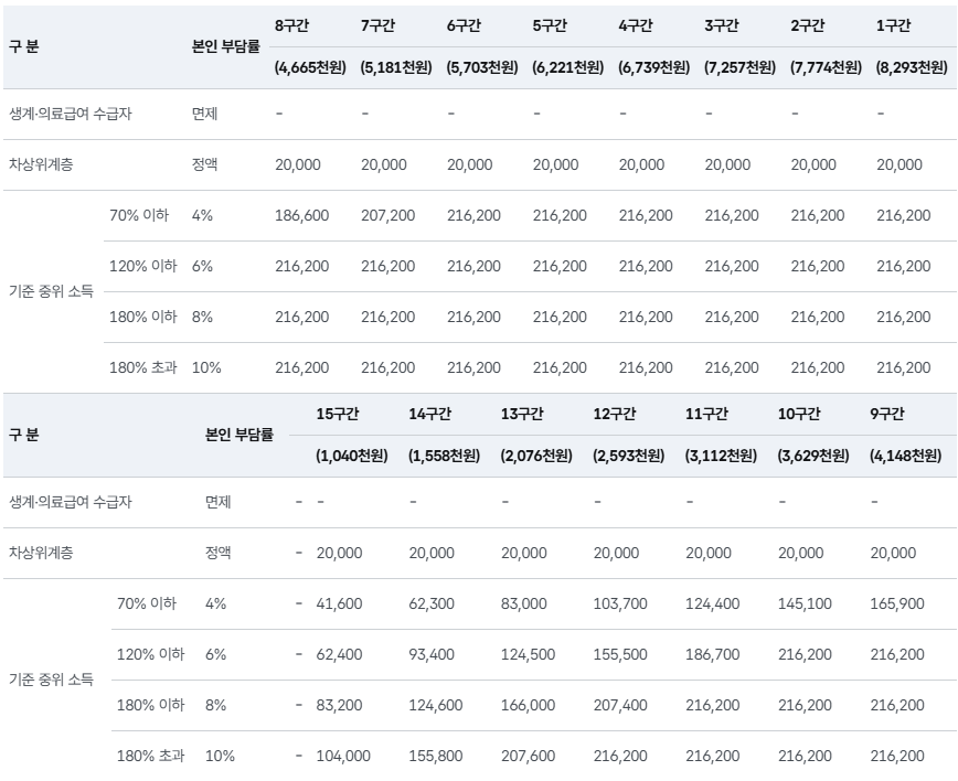 *활동지원급여 본인부담금 상한액은 216,200원이며, 국민연금법 제51조제1항제1호에 따른 금액의 100분의 7에 해당하는 금액에 따라 매년 변동될 수 있음